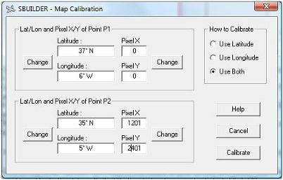 3. In the “Map Calibration” window, you supply the upper left / lower right corners of your BMP heightmap. As you see in the following picture, our "Gibraltar" map is higher than one tile (2401 pixels instead of 1201) due to the two merged bitmaps. Once you're done, click on the "Calibrate" button.