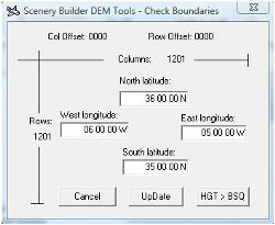 The "Check Boundaries" window opens. As you can see in the picture, SBuilder takes the tiles boundaries from the HGT file, and also shows you its number of rows and columns .